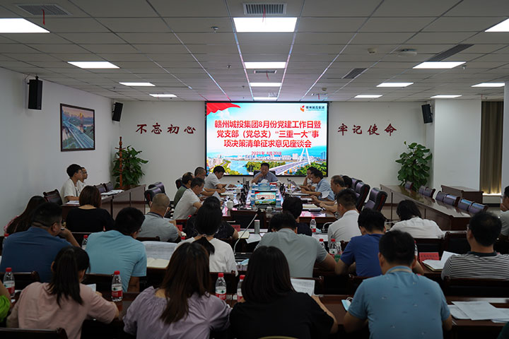 8月20日下午,贛州城投集團黨委召開8月份黨建工作日暨黨支部(黨總支)“三重一大”事項決策清單征求意見座談會,傳達(dá)學(xué)習(xí)市國資委黨委8月份黨建工作日座談會精神,并就部分支部擬定的《重大事項決策清單》進(jìn)行了討論。集團黨委副書記黃家偉主持會議,集團各黨支部(黨總支)書記以及相關(guān)部門負(fù)責(zé)人參加會議。
