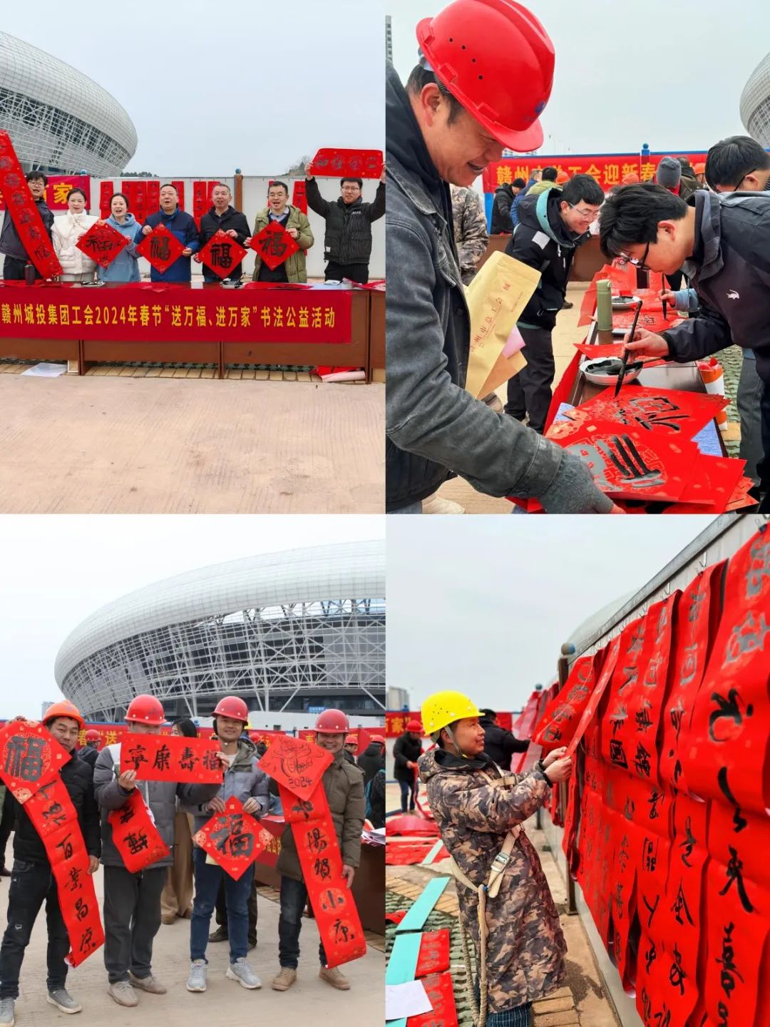 1月25日,贛州市總工會、贛州城投集團工會在贛州市全民健身中心一期項目工地開展迎新春“送萬福、進萬家”書法公益活動,為在寒冬里堅守崗位的一線工人書春送福,送去工會“娘家人”的關(guān)懷溫暖,為2024年春節(jié)營造歡樂吉祥的節(jié)日氛圍。
