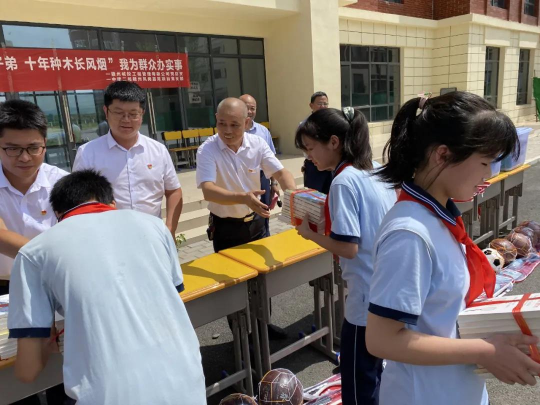 在開展“我為群眾辦實(shí)事”征集意見過程中,前不久,通過實(shí)地走訪了解到,贛州第一中學(xué)(西城校區(qū))在辦學(xué)過程中遇到學(xué)生課外讀物短缺的問題。工程管理公司黨總支立即牽頭組織了本次愛心公益活動(dòng)。在短短2天的時(shí)間內(nèi),全體黨員迅速行動(dòng)起來,通過微信支付、現(xiàn)場(chǎng)募捐等形式籌措了愛心資金共計(jì)6000余元,為學(xué)校準(zhǔn)備了300余冊(cè)課外讀物、共24個(gè)籃球、足球等體育用品,并為成績(jī)優(yōu)異的10名貧困學(xué)生代表捐贈(zèng)了愛心助學(xué)金。今后,高鐵新區(qū)鳳崗嘉苑住宅小區(qū)項(xiàng)目部的黨員將繼續(xù)為這些貧困學(xué)生提供學(xué)習(xí)上的幫助,一對(duì)一的護(hù)航他們?cè)诮窈蟮膶W(xué)習(xí)、生活、成長(zhǎng)。