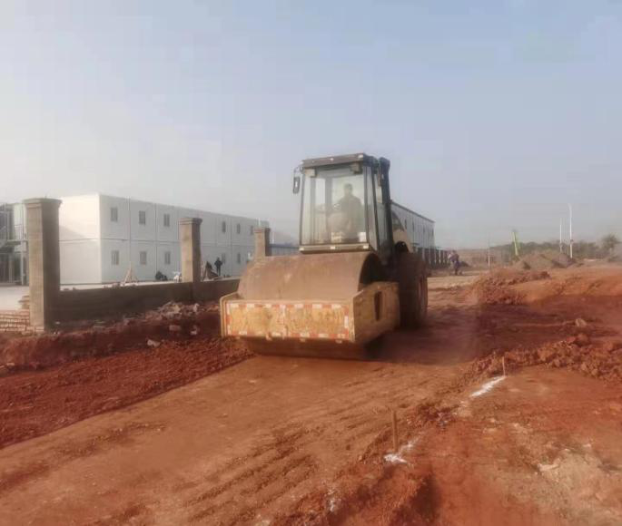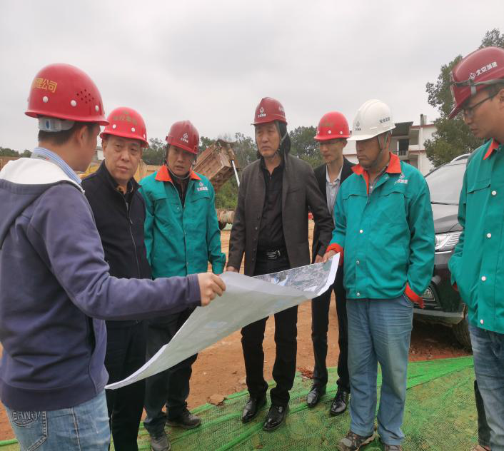 在瑞金干部學(xué)院建設(shè)現(xiàn)場(chǎng),工程管理公司工作人員組織參建人員開展修建施工便道等作業(yè)。