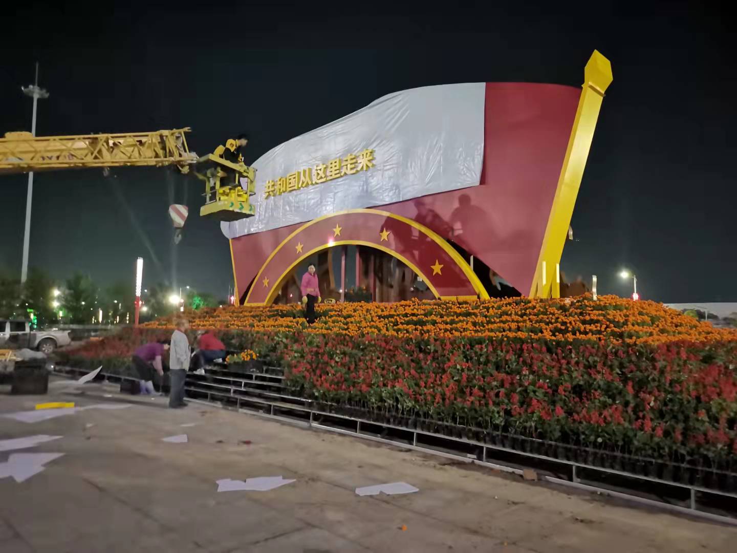 10月19日晚,在贛州黃金機(jī)場(chǎng)、贛州西站、贛州火車站及市中心城區(qū)快速路上,工人正在忙著吊裝、點(diǎn)焊、擺放花卉……呈現(xiàn)出一片緊張忙碌的景象,這是集團(tuán)高鐵建投公司組織施工隊(duì)伍連夜奮戰(zhàn),全力完成文化強(qiáng)省建設(shè)推進(jìn)大會(huì)紅色氛圍營(yíng)造任務(wù)的一段場(chǎng)景。