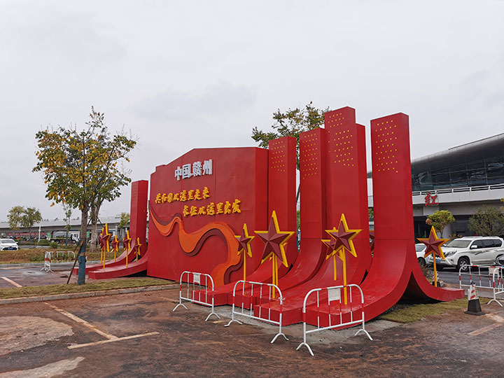 高鐵建投公司承接了設(shè)計(jì)贛州黃金機(jī)場(chǎng)、贛州西站、贛州火車站文化藝術(shù)造型、市中心城區(qū)快速路燈桿旗等氛圍營(yíng)造任務(wù)。此次氛圍營(yíng)造項(xiàng)目工期緊、任務(wù)重,高鐵建投公司克服了設(shè)計(jì)難、工序多、制作復(fù)雜、安裝難度大等困難,及時(shí)組織施工隊(duì)伍進(jìn)場(chǎng)施工。