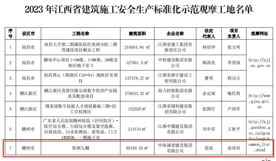 日前,贛州城投集團星洲九樾等2個項目獲評2023年江西省建筑施工安全生產(chǎn)標(biāo)準(zhǔn)化示范觀摩項目。