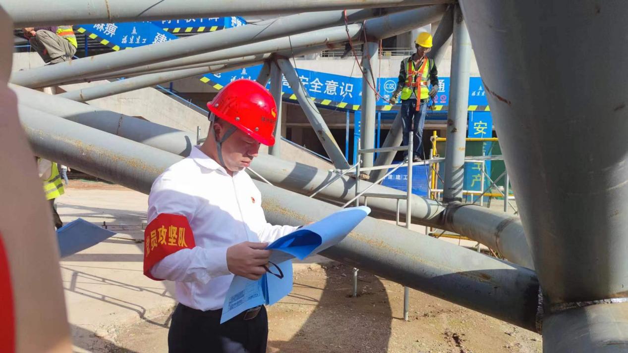 在項(xiàng)目施工現(xiàn)場,總有一個身影來回奔波。他頭戴安全帽,穿梭在綜合體育場施工現(xiàn)場協(xié)調(diào)推進(jìn)項(xiàng)目建設(shè),他就是項(xiàng)目部臨時聯(lián)合黨支部書記、項(xiàng)目經(jīng)理梅敏。自項(xiàng)目開工建設(shè)以來,他見證了項(xiàng)目在兩年多的時間里從一片荒蕪到“鳥巢”初現(xiàn)。
