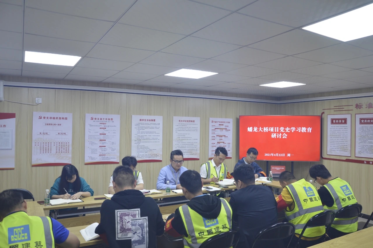 在蟠龍大橋項(xiàng)目,黨史學(xué)習(xí)教育活動(dòng)已常態(tài)化開展。在辦公區(qū)、施工現(xiàn)場(chǎng)掛起了一抹抹醒目的黨史學(xué)習(xí)宣傳標(biāo)語,在黨員活動(dòng)室走廊設(shè)置了黨史學(xué)習(xí)墻。在每月首個(gè)工作日,項(xiàng)目部組織全體黨員及項(xiàng)目人員組織升旗活動(dòng),并開展國旗下的黨史故事誦讀活動(dòng)。同時(shí),組織觀看微紀(jì)錄片《見證初心和使命的“十一書”》,重溫革命先烈的感人故事,感悟初心使命,弘揚(yáng)革命精神,為高質(zhì)量推動(dòng)項(xiàng)目建設(shè)積極奮斗。