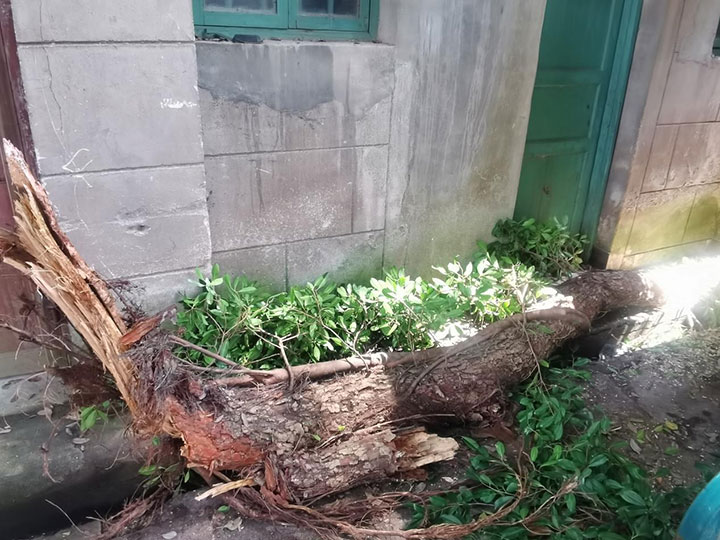 今年5月,我市大部分地區(qū)交替出現(xiàn)大風(fēng)、雷雨、暴雨等天氣,降雨量大且持續(xù)時(shí)間長(zhǎng)。5月18日,一場(chǎng)雷雨過(guò)后,贛州市機(jī)關(guān)事務(wù)管理中心轄區(qū)老市委大院內(nèi),一顆200多年的古榕樹(shù)樹(shù)枝斷裂,懸掛于院內(nèi)一屋頂之上。院內(nèi)居民憂(yōu)心忡忡,擔(dān)心這顆“定時(shí)炸彈”,隨時(shí)都可能掉下,砸毀房屋,危及院內(nèi)居民的人身安全。