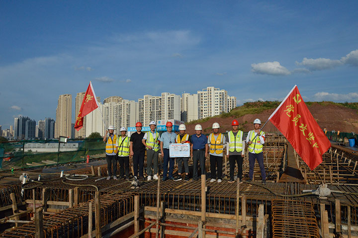 載著中國(guó)共產(chǎn)黨建黨100周年慶典熱潮,7月13日,由贛州城投集團(tuán)代建的、中建三局集團(tuán)有限公司承建的贛州市蟠龍大橋項(xiàng)目傳來(lái)建設(shè)新捷報(bào):橋梁部分引橋工程首聯(lián)現(xiàn)澆箱梁成功澆筑,這是橋梁工程由下部結(jié)構(gòu)施工轉(zhuǎn)戰(zhàn)上部結(jié)構(gòu)施工的標(biāo)志性關(guān)鍵節(jié)點(diǎn),為2022年年底全線(xiàn)通車(chē)打下了堅(jiān)實(shí)基礎(chǔ)。也是工程管理公司黨總支堅(jiān)持黨建引領(lǐng),在蟠龍大橋項(xiàng)目上設(shè)立臨時(shí)聯(lián)合黨支部,推行“一五一三一”工作法,以實(shí)際行動(dòng)踐行初心使命的又一個(gè)先鋒創(chuàng)績(jī)成果,給建黨100周年慶典活動(dòng)增添了一份喜慶。