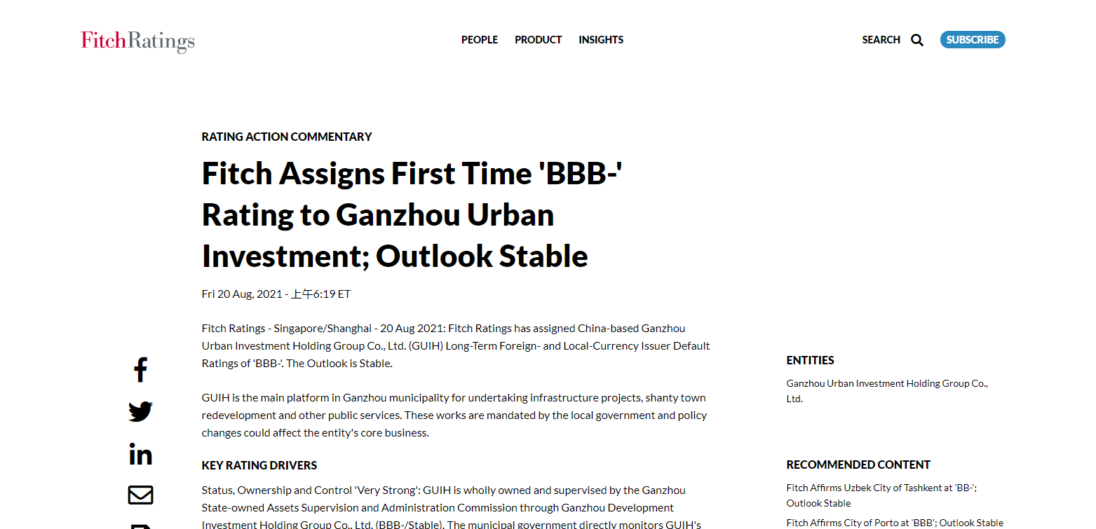 (上圖為惠譽國際信用評級公司評級結(jié)果公告)