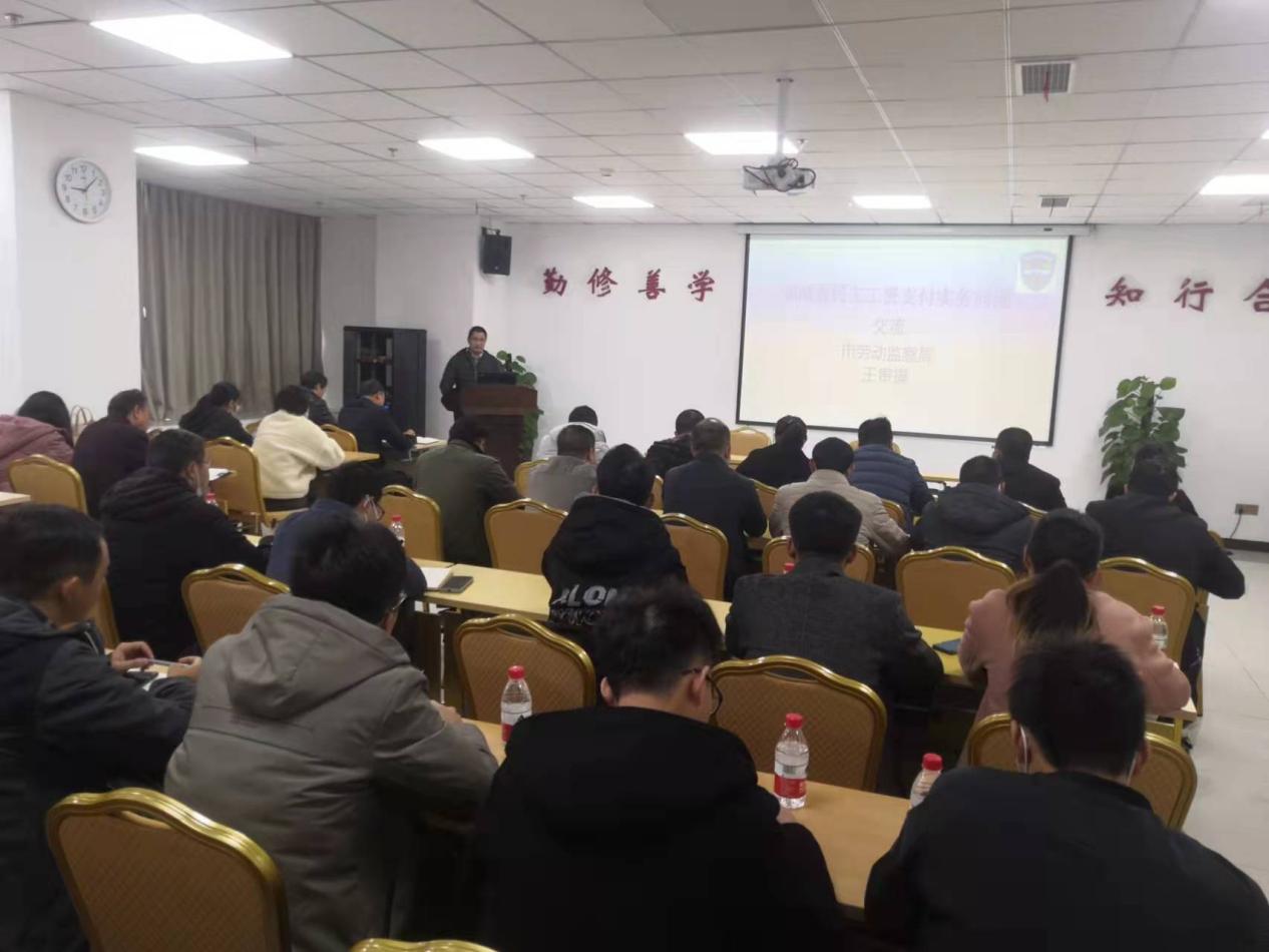 為進(jìn)一步加強(qiáng)贛州城投集團(tuán)在建工程項(xiàng)目農(nóng)民工工資支付規(guī)范化管理,提升項(xiàng)目建設(shè)管理人員管理水平,切實(shí)做好農(nóng)民工工資支付保障工作,近日,贛州城投集團(tuán)黨委黨校舉辦保障農(nóng)民工工資支付專題培訓(xùn)。根據(jù)集團(tuán)黨委黨校第二學(xué)期教學(xué)計(jì)劃安排,此次培訓(xùn)由工程管理公司承辦,贛州市勞動(dòng)監(jiān)察局監(jiān)察一科科長(zhǎng)王貴福受邀前來集團(tuán)授課,集團(tuán)各在建項(xiàng)目負(fù)責(zé)人、勞資監(jiān)管員、子公司共50余人參加培訓(xùn)。