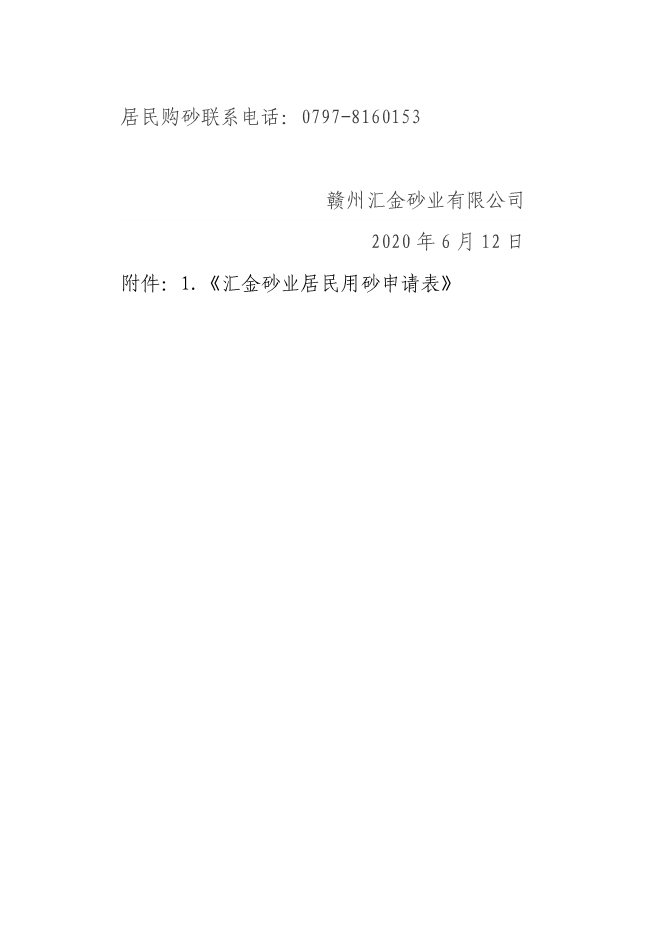 附件:1.《匯金砂業(yè)居民用砂申請(qǐng)表》