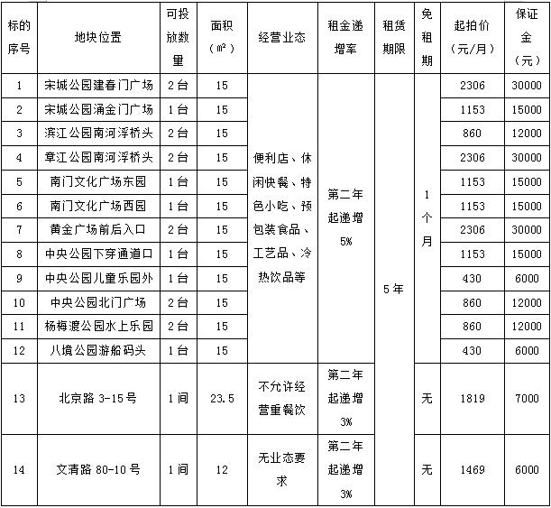 以上清單內(nèi)容僅供參考,以現(xiàn)狀交付,拍賣公司和委托人不承擔瑕疵擔保責任,其中標的1-標的12僅提供場地,競得人負責花車經(jīng)營設備投資、日常經(jīng)營(包括經(jīng)營秩序、場地保潔、垃圾清運、污水廢水處理)。