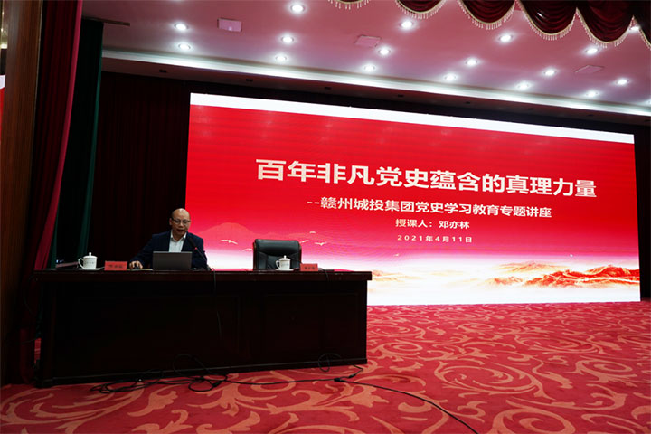 開學(xué)典禮后,贛州城投大學(xué)(黨校)第二學(xué)期第一課黨史學(xué)習(xí)教育專題講座開課。本次邀請(qǐng)了江西理工大學(xué)應(yīng)用科學(xué)學(xué)院黨委書記、馬克思主義學(xué)院教授、碩士生導(dǎo)師鄧亦林以《百年黨史中蘊(yùn)含的真理力量》的主題為全員作黨史學(xué)習(xí)教育專題講座。