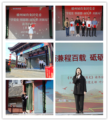 贛州城投集團(tuán)黨委“學(xué)黨史 悟思想 辦實(shí)事 開新局”讀書分享會(huì)將每月舉辦一期,每期充分結(jié)合各黨支部業(yè)務(wù)特色,走進(jìn)社區(qū)、走進(jìn)項(xiàng)目、走進(jìn)基層等,一直持續(xù)到11月份共舉辦八場(chǎng),前七期由集團(tuán)黨支部結(jié)對(duì)聯(lián)合承辦預(yù)賽階段,第八期將由集團(tuán)黨委主辦讀書分享會(huì)總決賽。