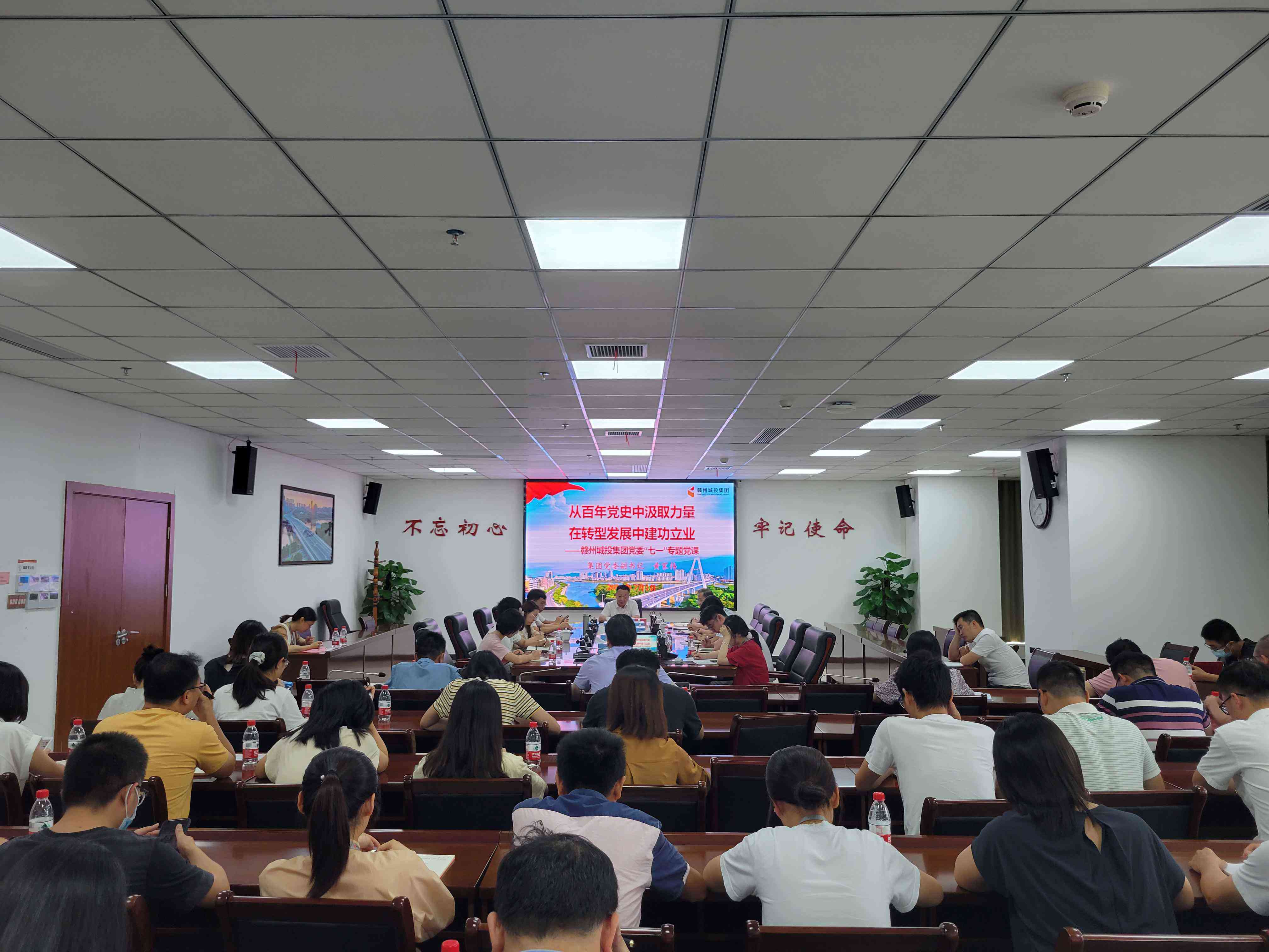 在收聽收看慶祝中國共產(chǎn)黨成立100周年大會直播盛況后,為學(xué)深悟透習(xí)近平總書記發(fā)表的重要講話精神,7月1日下午,贛州城投集團(tuán)黨委副書記黃家偉以《從百年黨史中汲取力量,在轉(zhuǎn)型發(fā)展中建功立業(yè)》為題,上了一堂精彩黨課。集團(tuán)機(jī)關(guān)一支部、建筑設(shè)計院公司黨支部、天成設(shè)計院黨支部全體黨員、入黨積極分子、入黨申請人以及集團(tuán)其他支部的黨員代表等共計70余人聆聽黨課。