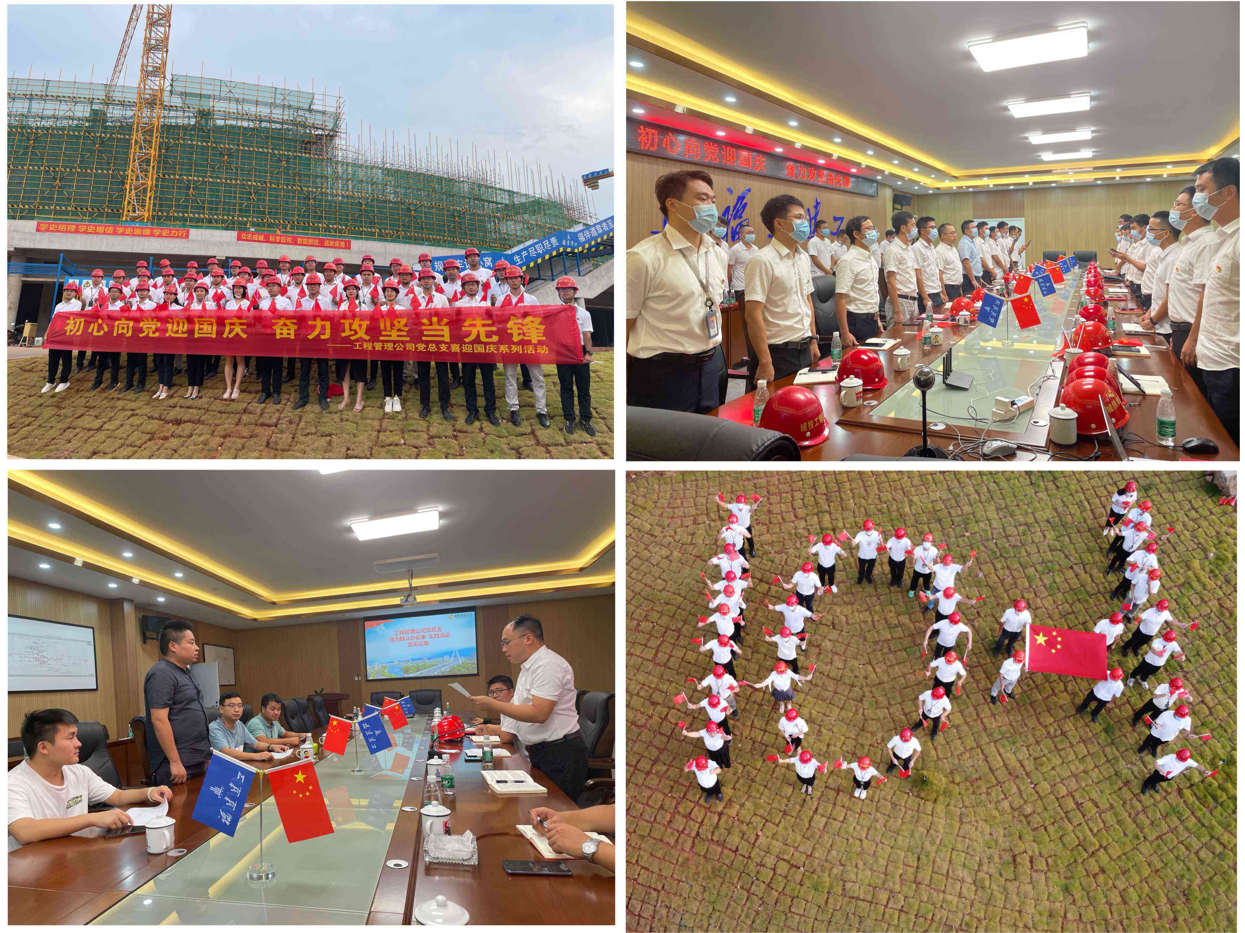 工程管理公司黨總支:“10.1”造型的中國(guó)紅飄揚(yáng)在工地上