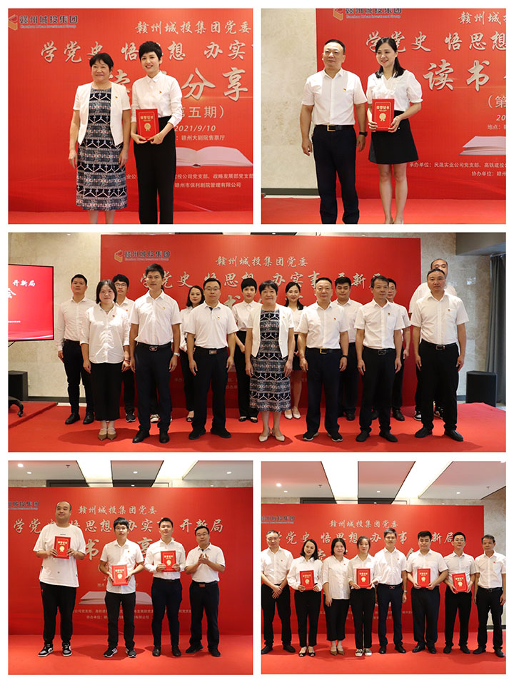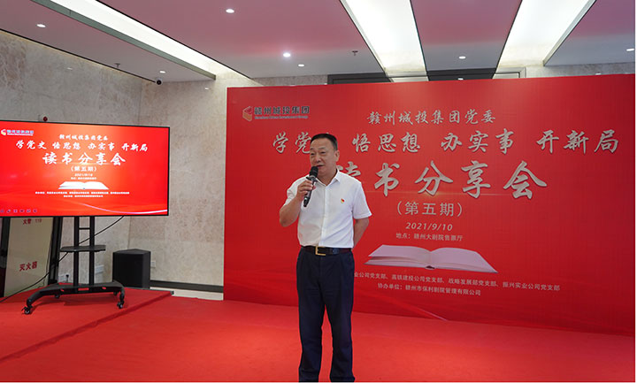 9月10日,為推動(dòng)黨史學(xué)習(xí)教育有特色、出成效,贛州城投集團(tuán)黨委在贛州大劇院售票廳舉辦“學(xué)黨史 悟思想 辦實(shí)事 開(kāi)新局”黨史學(xué)習(xí)教育第五期讀書(shū)分享會(huì)。市國(guó)資委二級(jí)調(diào)研員宋英蒞臨指導(dǎo),集團(tuán)黨委副書(shū)記黃家偉出席并作點(diǎn)評(píng)講話(huà),集團(tuán)董事會(huì)秘書(shū)、集團(tuán)相關(guān)部門(mén)負(fù)責(zé)人、各黨支部書(shū)記及部分黨員參加。