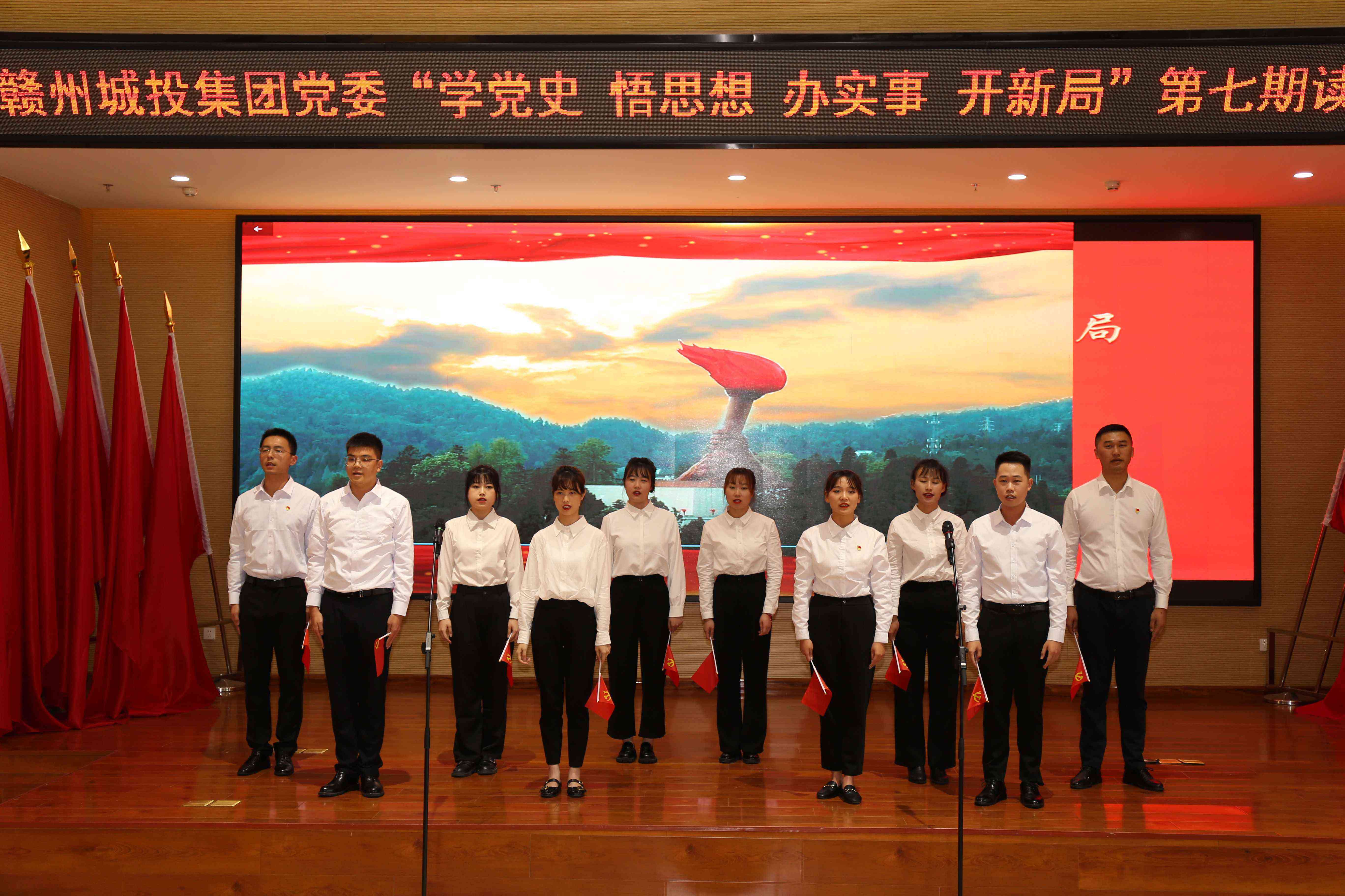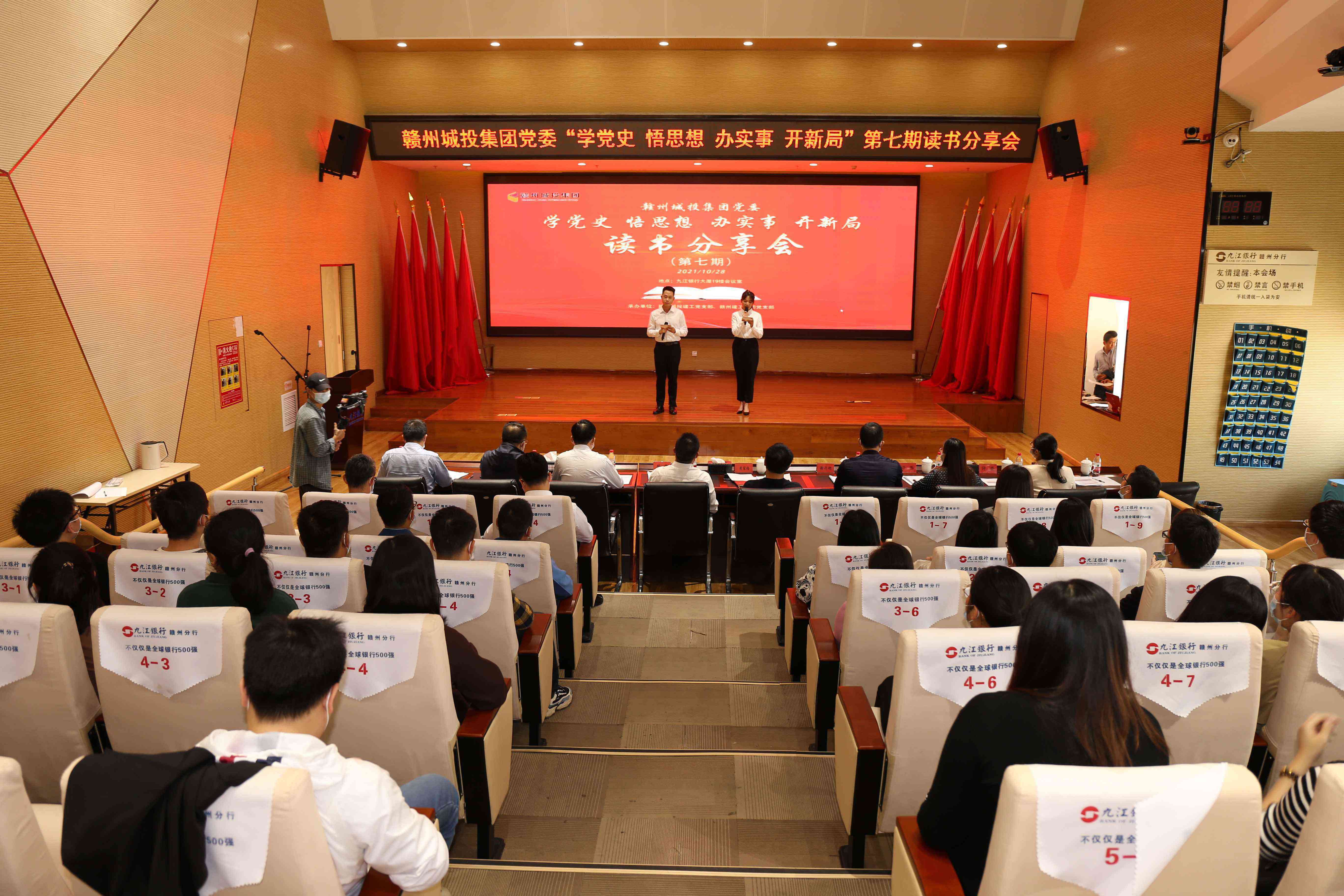為引導(dǎo)廣大黨員學(xué)好百年黨史,傳承紅色基因,凝聚奮進力量,10月28日下午,贛州城投集團黨委在九江銀行大廈19樓會議室舉辦“學(xué)黨史 悟思想 辦實事 開新局”第七期讀書分享會。市國資委黨委黨史學(xué)習(xí)教育領(lǐng)導(dǎo)小組辦公室副主任、宣教科科長謝達迎應(yīng)邀到場指導(dǎo),集團黨委副書記黃家偉,集團黨委委員、紀委書記蔡勇出席,辦公室、黨群、財務(wù)等評委,贛州城投建工黨支部、贛州建工集團黨支部全體黨員、集團其它支部黨員代表和員工共計60余人參加活動。