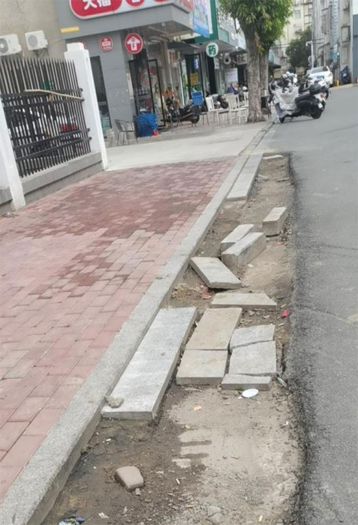 接市民反映,章江新區(qū)返遷房H4地塊臨石城路部分道路設(shè)施缺失,影響出行,存在安全隱患。工程管理公司黨總支立即組織項(xiàng)目管理人員赴現(xiàn)場核實(shí),發(fā)現(xiàn)H4地塊紅線外有長30米,寬0.3米的路段未攤鋪瀝青砼。經(jīng)了解,由于2018年石城路“白改黑”施工期間,因H4地塊在施工過程中沿人行道邊緣設(shè)置了臨時圍擋,導(dǎo)致攤鋪機(jī)無法通過進(jìn)行攤鋪瀝青。