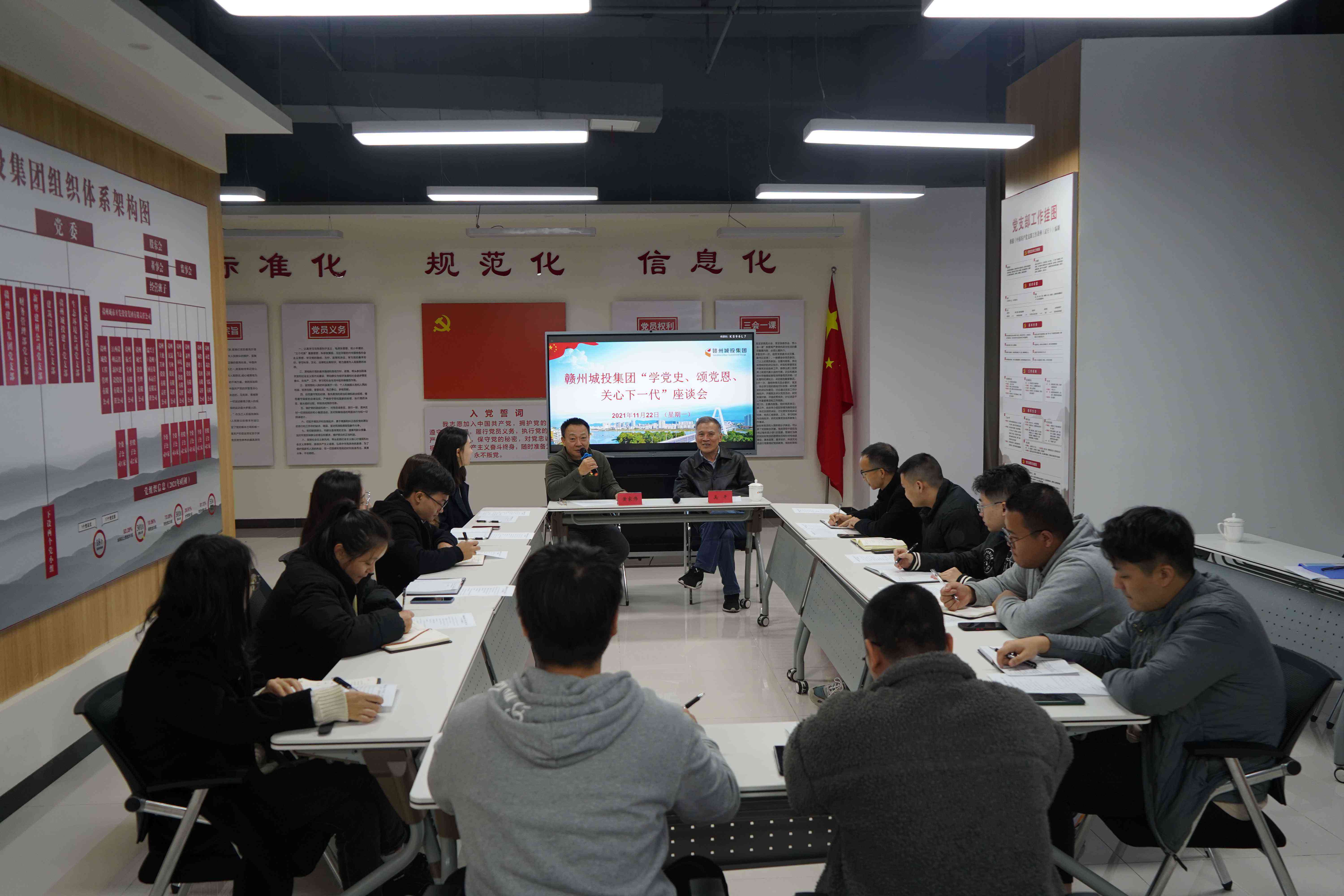 近日,贛州城投集團關(guān)工委召開“學(xué)黨史、頌黨恩,關(guān)心下一代”座談會,集團黨委副書記黃家偉出席座談會并講話,原集團紀委書記、離退休老員工代表奚平,以及集團部分青年員工代表等15人參加座談。