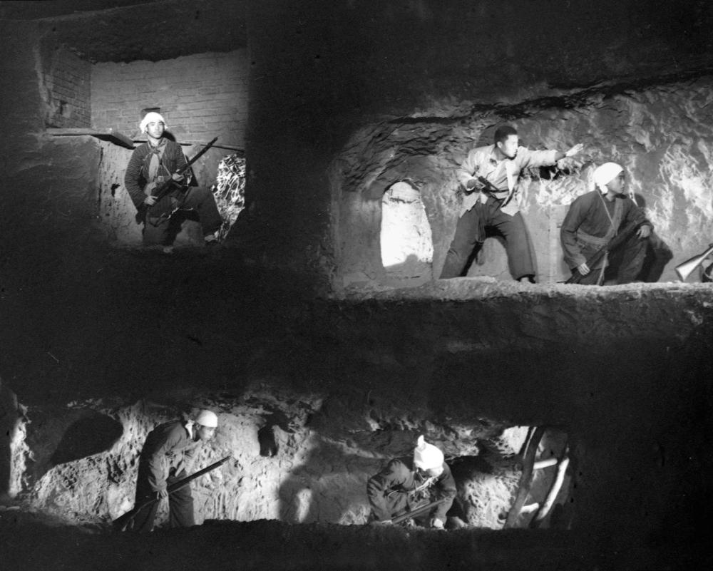 這是平原地區(qū)的民兵正在地道里從一個(gè)射擊口轉(zhuǎn)移到另一個(gè)射擊口去消滅敵人(資料照片)。新華社發(fā)