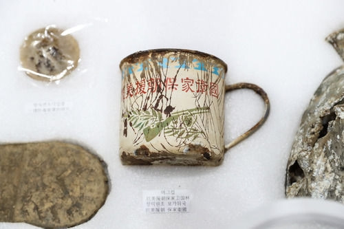 △這是2020年9月26日在韓國仁川的志愿軍烈士遺骸裝殮儀式現(xiàn)場拍攝的部分志愿軍烈士遺物。當(dāng)日,第七批在韓中國人民志愿軍烈士遺骸裝殮儀式在韓國仁川舉行,中韓雙方27日在仁川國際機場舉行遺骸交接儀式。此次韓方向中方交接117位在韓中國人民志愿軍烈士遺骸及相關(guān)遺物。新華社記者 王婧嬙 攝