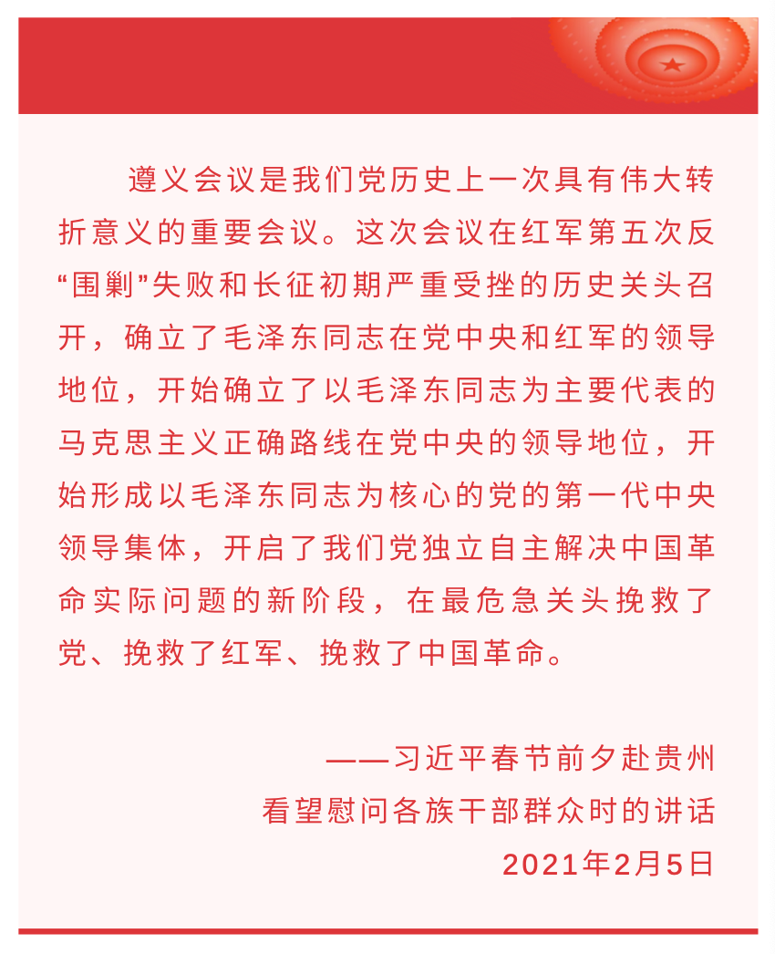 遵義會(huì)議是黨的歷史上一個(gè)生死攸關(guān)的轉(zhuǎn)折點(diǎn)。遵義會(huì)議后,中央紅軍在毛澤東等指揮下,根據(jù)實(shí)際情況的變化,靈活變換作戰(zhàn)方向,迂回穿插于敵人重兵之間,于5月上旬渡過(guò)金沙江。至此,中央紅軍擺脫幾十萬(wàn)國(guó)民黨軍隊(duì)的圍追堵截,粉碎了蔣介石圍殲紅軍于川黔滇邊境的計(jì)劃,取得了戰(zhàn)略轉(zhuǎn)移中具有決定意義的勝利。