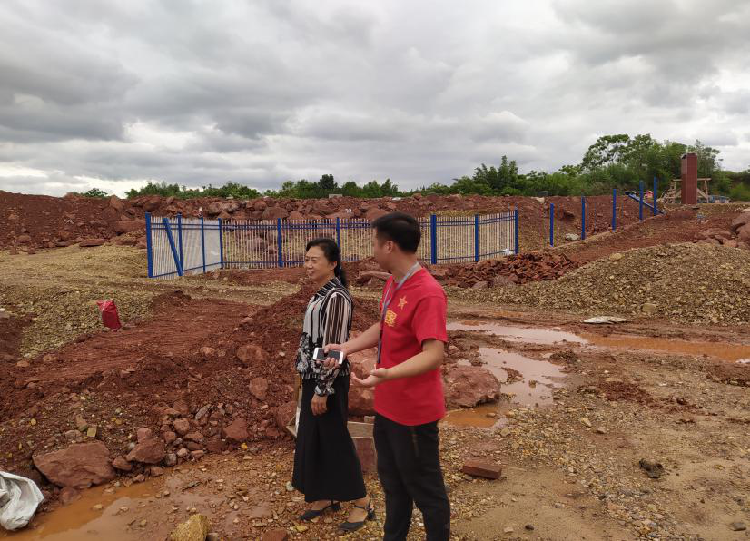 (上圖為謝健在現(xiàn)場協(xié)調(diào)砂石堆場建設工作。)